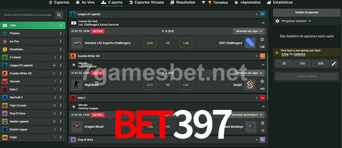 O Bet397 oferece uma grande seleção de opções de apostas em e-sports com probabilidades competitivas
